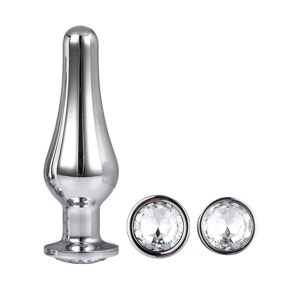 The Gleaming Love collection presents this set of conical shaped and shiny anal plugs with a gemstone in the base. Made of smooth lightweight aluminium and seamless, these pleasure toys are easy to glide and the increasing size is guaranteed to induce pleasure. The flared base ensures a sense of security while keeping the jewel sitting comfortably between the butt cheeks.