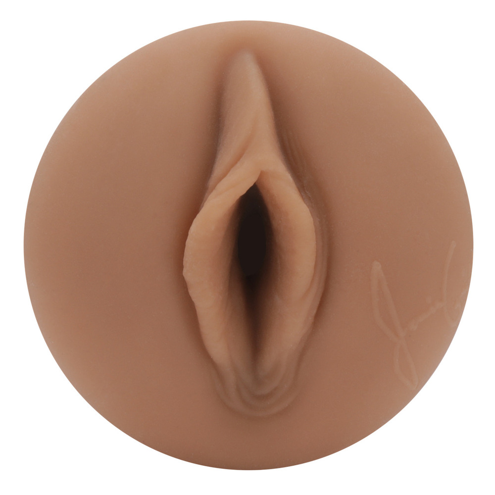 Masturbator with tanned skin and vagina opening. A lifelike replica of erotic star Janice Griffith’s most intimate parts. First sleeve with a tanned skin-colour. Pleasure tunnel with an extremely stimulating combination of differently-sized dots, ribs and grooves. Covering cap. Signature of the star right next to the labia. Superskin texture. Complete length 25 cm, complete length penetration depth. TPE.